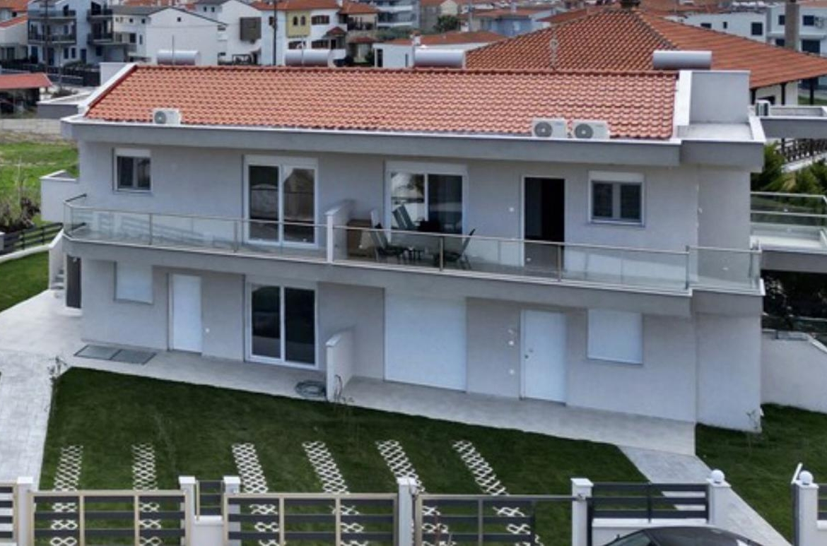 Na prodaju apartmani od 75m2 u Nikitiju. Sastoje se od 3 spavace sobe kuhinje I kupatila. Stanovi u prizemlju imaju sopstveno dvoriste . Stanovi na spratu imaju 2 velike terase. Svi stanovi imaju parking mesto solarni bojler klima uredjaje. Nalaze se na 400m od mora. Rok zazavrsetak radova decembar 2026.