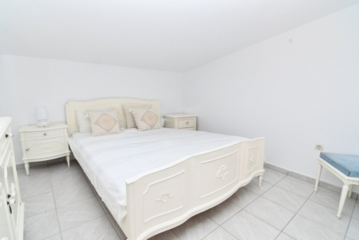 PRODАJE SE mezoneta u ukupne površine 120 m² na placu od 150 m², udaljena samo 30 metara od mora. Sastoji se od 4 spavaće sobe, dnevnog boravka, kuhinje, 2 kupatila. Izgrađena je 2000. godine, energetska klasa A, i poseduje klima uređaje pogled na more, aluminijumsku stolariju, podne pločice, sigurnosna vrata, plakare, parking, kamin, dvorište, bazen, balkone od 30 m².