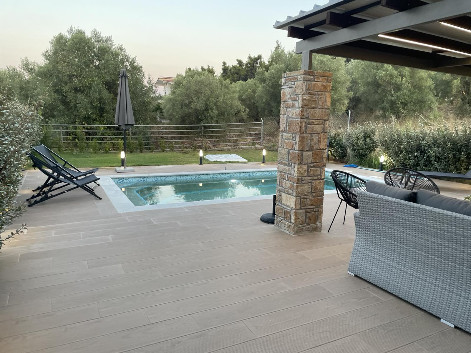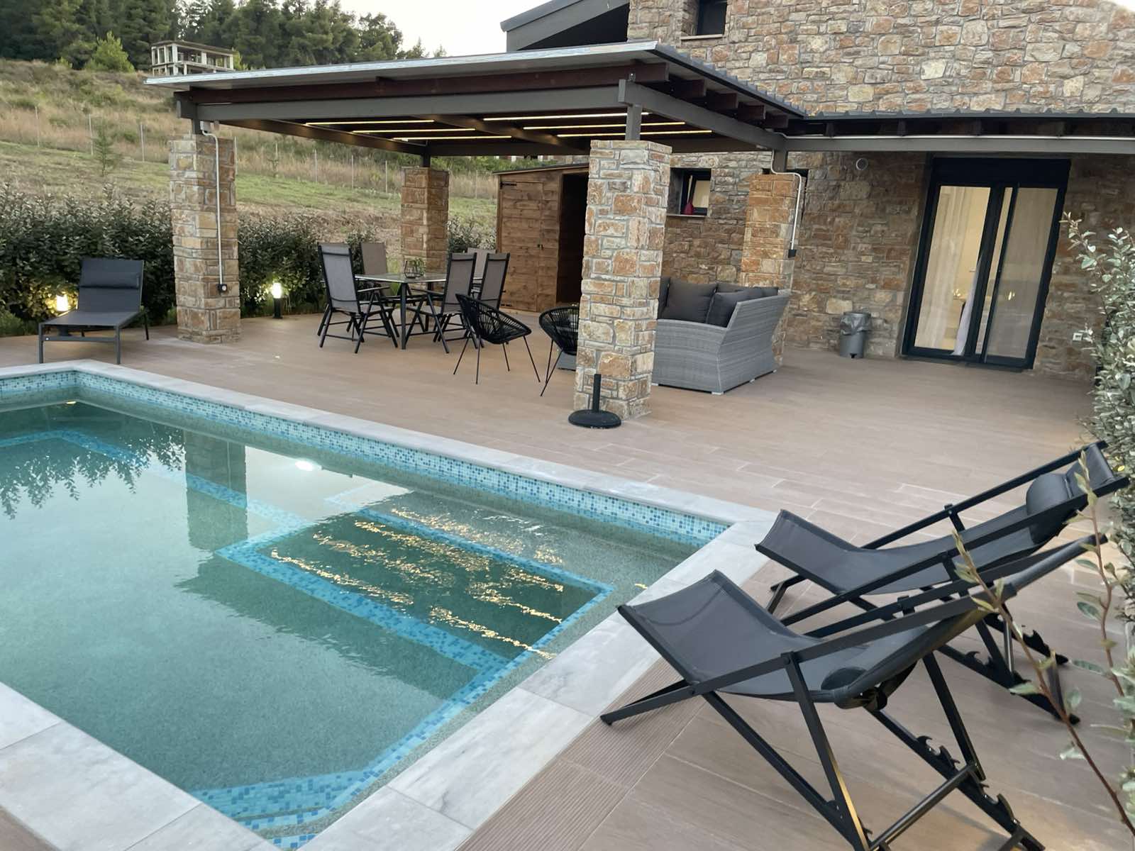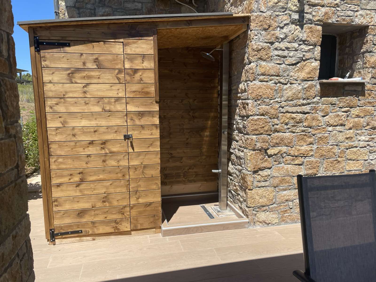 Mezoneta poseduje sopstveni bazen I jos jednu tus kabinu napolju kao i ostavu.