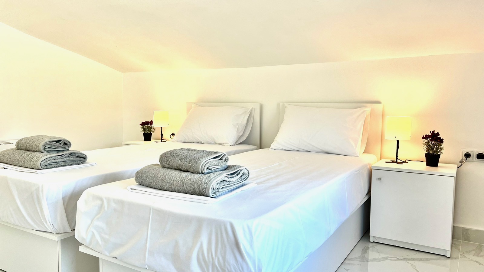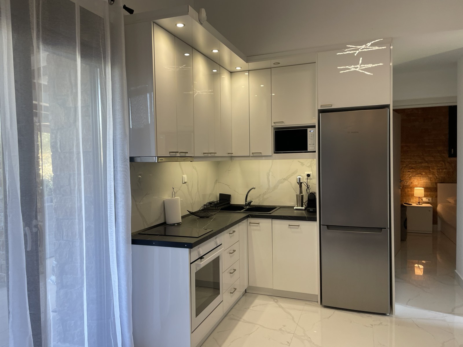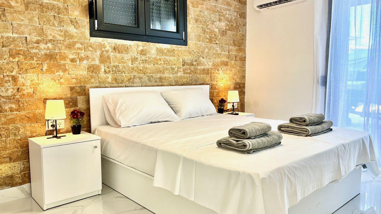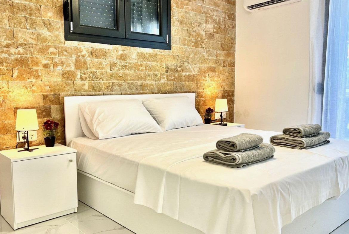 Sastoji se od 2 spavace sobe, dnevne sobe,2 kupatila (oba sa tus kabinama).