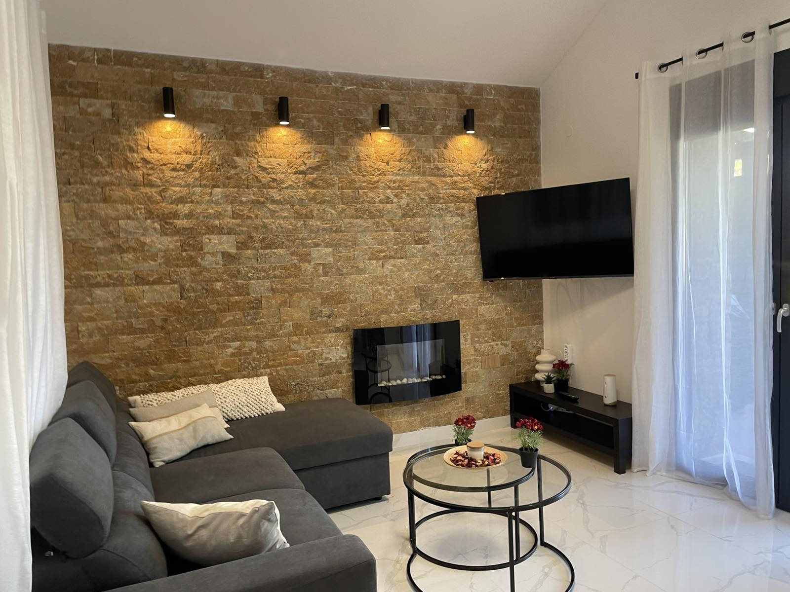 Mezoneta je napravljena od kamena. Zidovovi su debljine 50cm plus dodatnih 7cm gipsanih ploca.